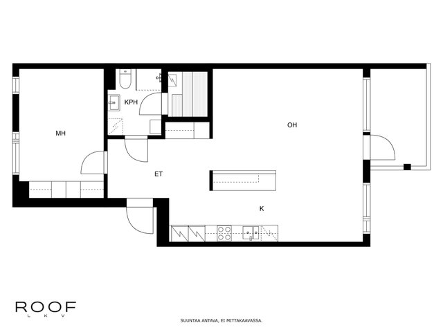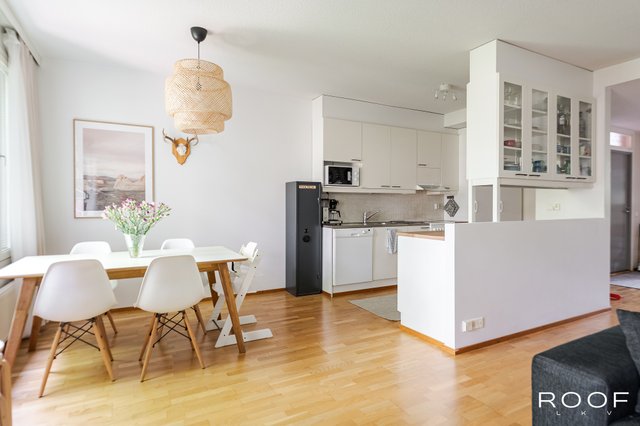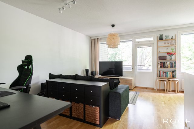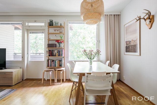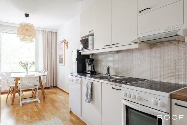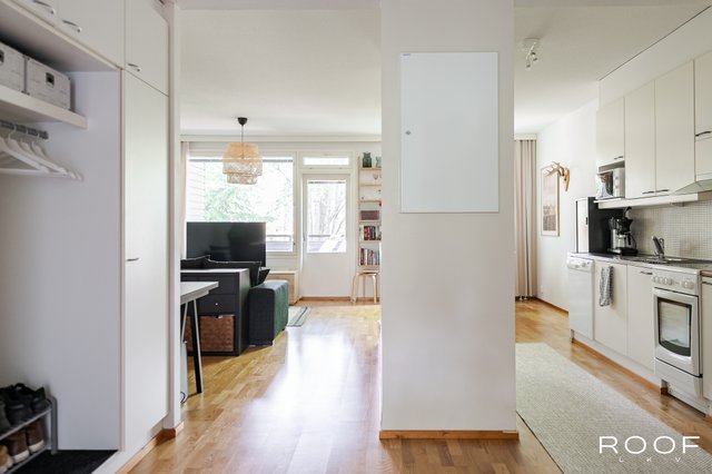 Asuntoon sisään tultaessa huomio kiinnittyy avoimeen ja tilavaan keittiö/olohuone yhdistelmään. Olohuoneesta ja parvekkeelta on kauniit vehreät maisemat. Kodissa on myös iso makuuhuone, toimiva kylpyhuone ja ikioma sauna.