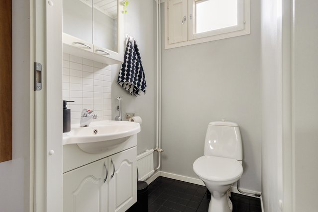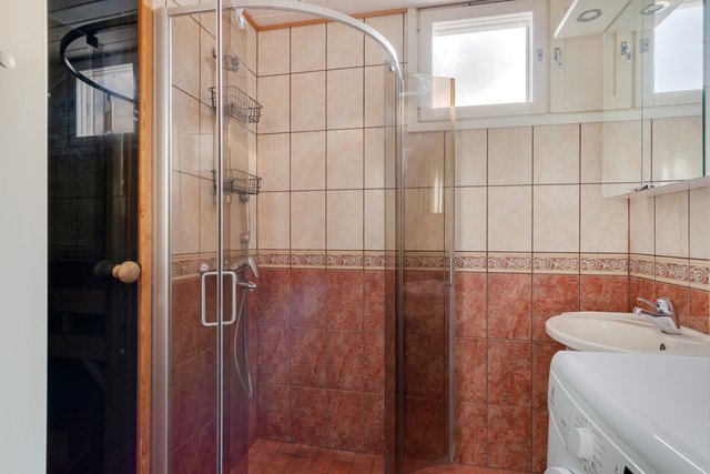 - Suihku, pesukoneliitäntä, lattialämmitys, peilikaappi, ja allaskaappi