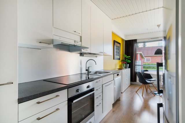 Vuonna 1993 valmistunut rivitalon päätyhuoneisto tarjoaa vaivatonta ja viihtyisää asumista. Keittiö on uusittu kokonaan kodinkoneineen heinäkuussa 2017, ja astianpesukone on vaihdettu lokakuussa 2025. Eteisen lattia on laatoitettu, laminaattilattiat uusittu sekä seinä- ja kattopinnat maalattu vuonna 2017 – kokonaisuus on raikas ja nykyaikainen.