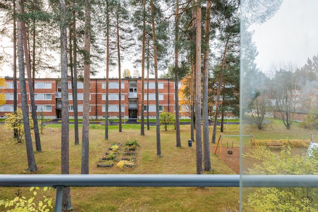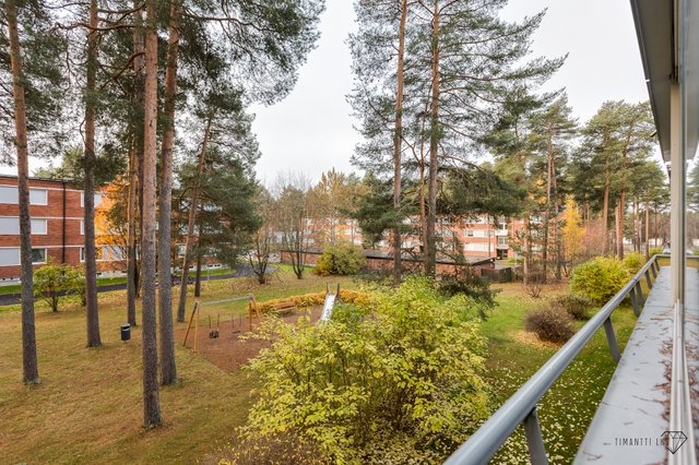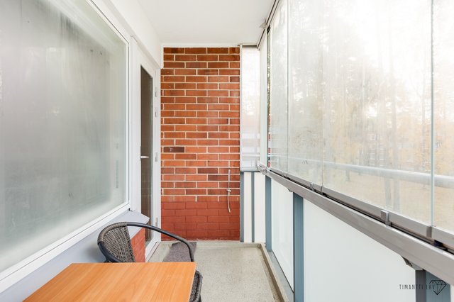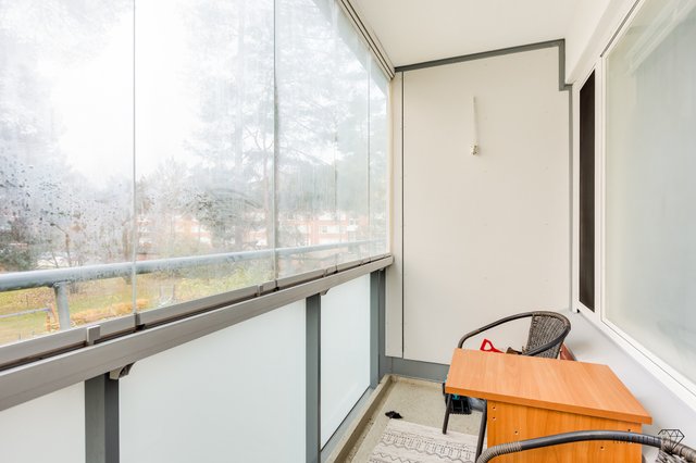 Olohuoneesta on käynti lasitetulle parvekkeelle, josta aukeaa miellyttävä näkymä yhtiön takapihalle.