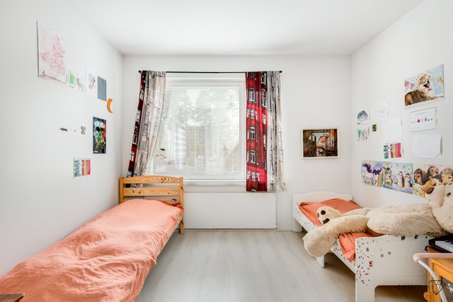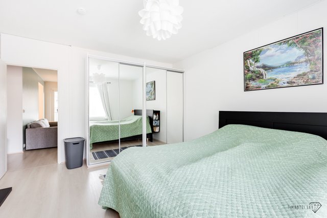 Makuuhuoneita löytyy asunnosta kaksi kappaletta jotka ovat reilun kokoisia ja kaapistoineen. Lisää säilytystilaa löytyy vaatehuoneesta ja häkkivarastosta.
