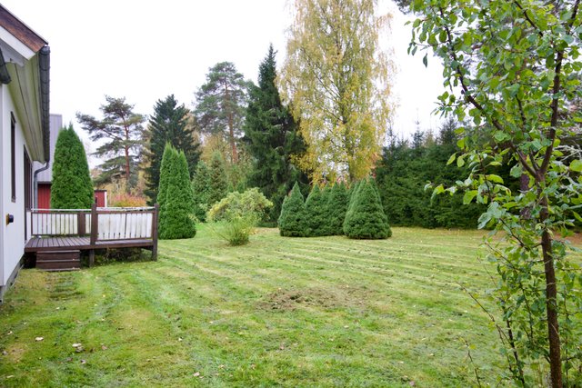 Till huset hör ett garage, vilket ger komfort särskilt under vintermånaderna. Tomten är privat och mäter 804m2, vilket ger möjlighet till trädgårdsarbete eller lek för barnen.