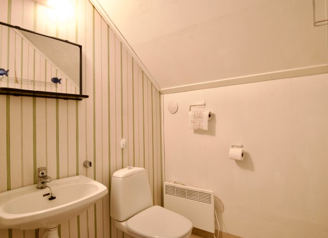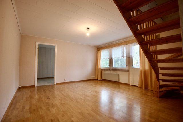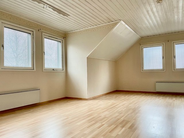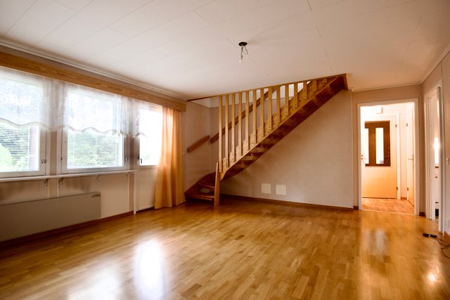 Huset har två våningar, fem rymliga rum, kök, vardagsrum, två sovrum, badrum med bastu, hemvårdsrum, två separata wc:n samt ett stort allrum på övre våningen.