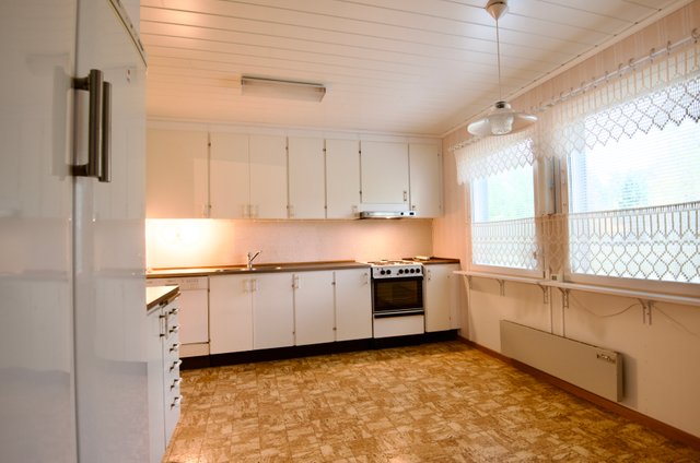 - Jääkaappi, astianpesukone, liesituuletin, uuni, liesi, ja erillinen pakastin