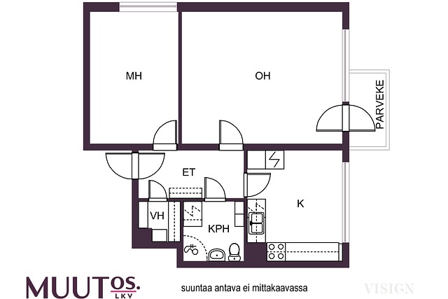 - Edellä mainittu pinta-ala saattaa tämän ikäisessä kohteessa poiketa olennaisestikin huoneiston nykyisen ja rakentamisaikaisen mittaustapojen ja standardien mukaan laskettavasta pinta-alasta. Huoneiston todellinen pinta-ala voi olla yhtiöjärjestyksessä, isännöitsijäntodistuksessa ja esitteessä mainittua pienempi tai suurempi. Hinta ei ole pinta-alaperusteinen. Yhtiöjärjestyksen mukainen huoneistoselitelmä: 2h+k