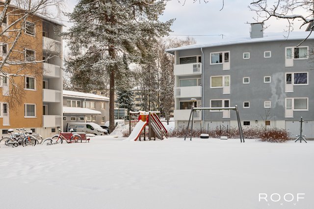 Taloyhtiössä on muun muassa sauna, pesutupa sekä urheiluvälinevarasto. Lapsiperheille taloyhtiön turvallinen leikkialue tarjoaa mukavan paikan leikkeihin. Rakennuksessa on vain kolme kerrosta ja tämä asunto sijaitsee toisessa kerroksessa.