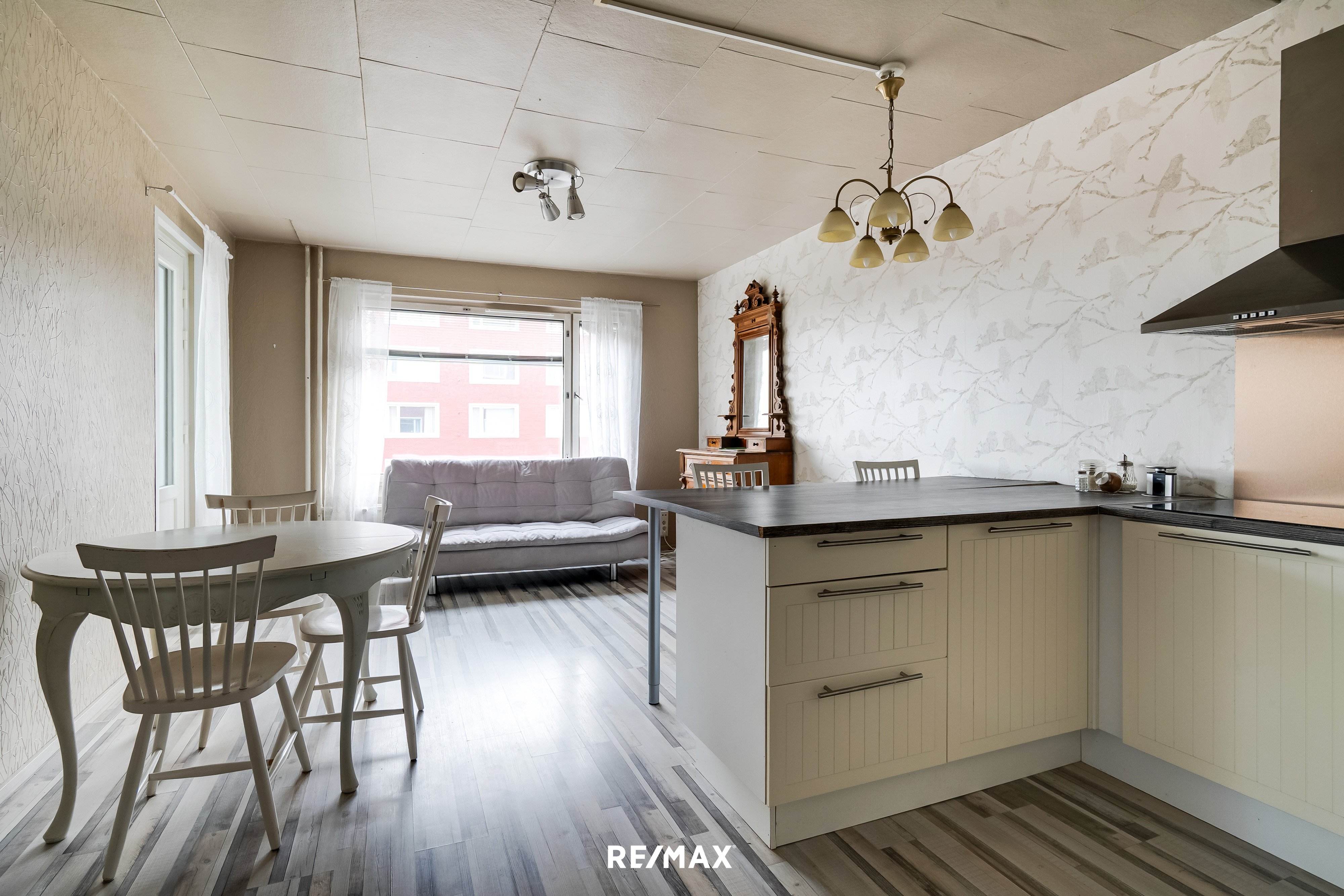 Asunnon keittiö on suunniteltu sujuvaa arkea varten ja varustettu nykyaikaisilla kodinkoneilla, kuten induktioliedellä sekä astianpesukoneella. Asuntoa on myös remontoitu kattavasti, mikä näkyy kokonaisuuden modernina ja hyvin pidettynä ilmeenä. Valoisa olohuone tarjoaa runsaasti tilaa oleskeluun, ja siitä on suora kulku koilliseen avautuvalle lasitetulle parvekkeelle – täydellinen paikka rentoutumiseen ympäri vuoden. Makuuhuone on rauhallinen ja helposti sisustettava.