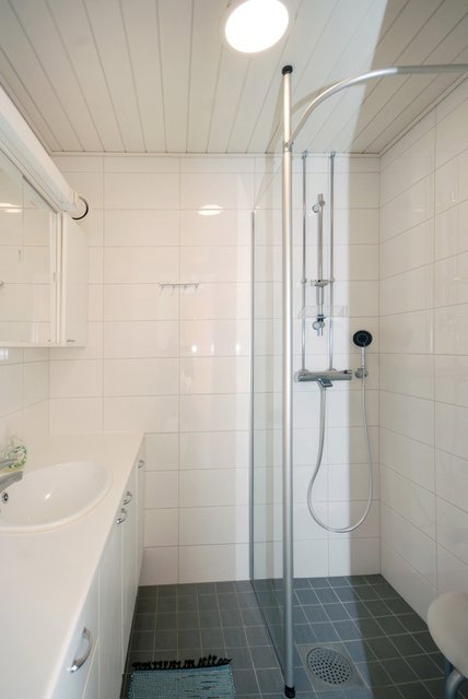 The apartment is in clean basic condition and the bathrooms and separate toilet have been renovated when the pipes were done.