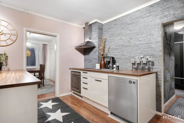 - Varustus: induktioliesi, uuni, liesituuletin, astianpesukone, jääkaappi, allas, hana, kaapistot Seinät: maalatut seinäpinnat Lattia: laminaattilattia
