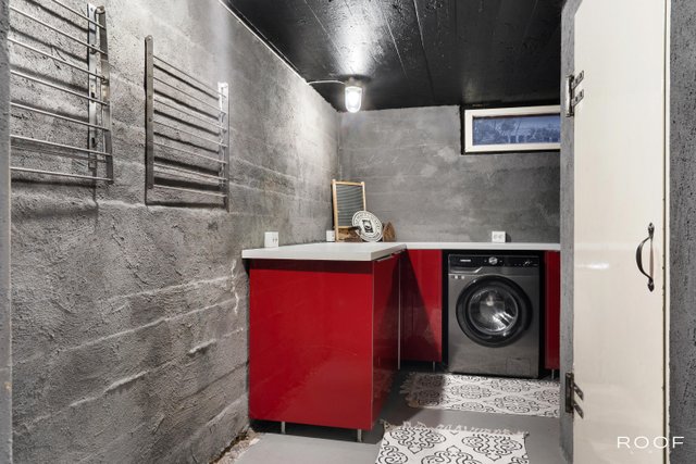 - Kellarikerroksessa sijaitsee viihtyisä oleskelutila, saunaosasto, kylpyhuone sekä kodinhoitohuone. Lisäksi kellarissa on runsaasti varastotilaa. Tilat soveltuvat erinomaisesti vapaa-ajan viettoon, harrastekäyttöön tai arjen toimintoihin.