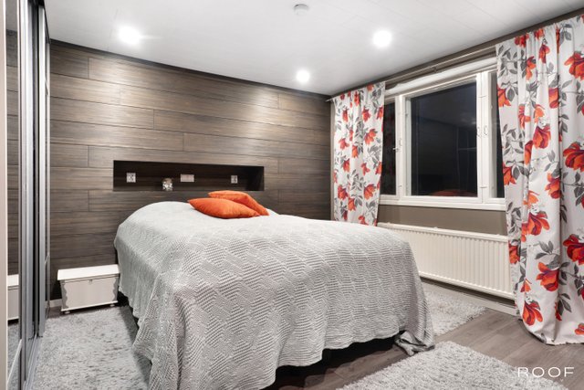 - Makuuhuone 1 Varustus: kaapistot Seinät: maalatut ja osin paneloidut Lattia: laminaattilattia Makuuhuone 2 Seinät: maalatut ja osin tapetoidut Lattia: laminaattilattia Makuuhuone 3 Seinät: maalatut ja osin tapetoidut Lattia: laminaattilattia
