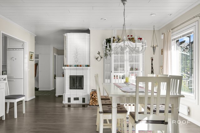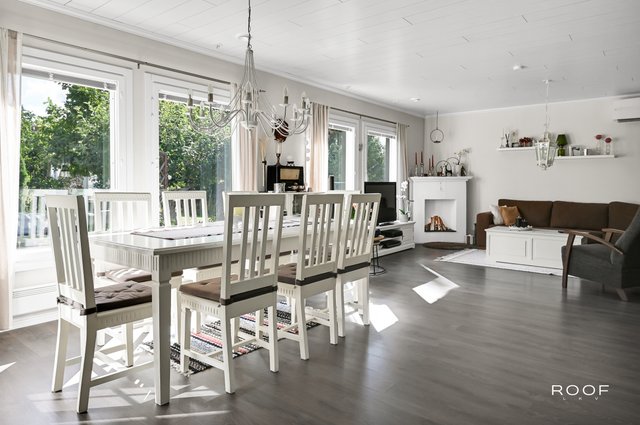 Päivitetyt ja valoisat pinnat. Optimoitu sähkölämmitys, jota täydentävät varaava takka ja ilmalämpöpumppu. Koneellinen ilmanvaihto huolehtii tulo- ja poistoilmasta. Kuituliittymä.