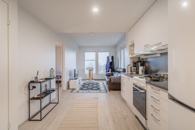 Tämä hyväkuntoinen vuonna 2021 valmistunut kaksio tarjoaa helppoa ja modernia asumista hissillisen talon ylemmissä kerroksissa. Pohjaratkaisu on toimiva ja vaaleat pinnat tuovat tilaan mukavasti valoisuutta.