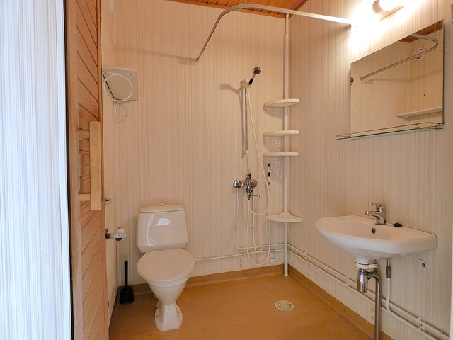 - WC-istuin, suihku, ja pesukoneliitäntä