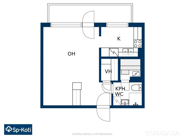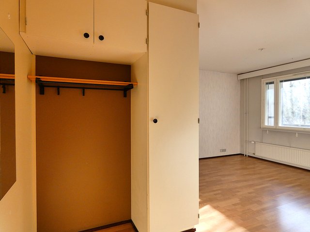 Oma sauna, lasitettu iso parveke, vaatehuone; tästä ei yksiön tilat voi juuri paremmaksi muuttua.