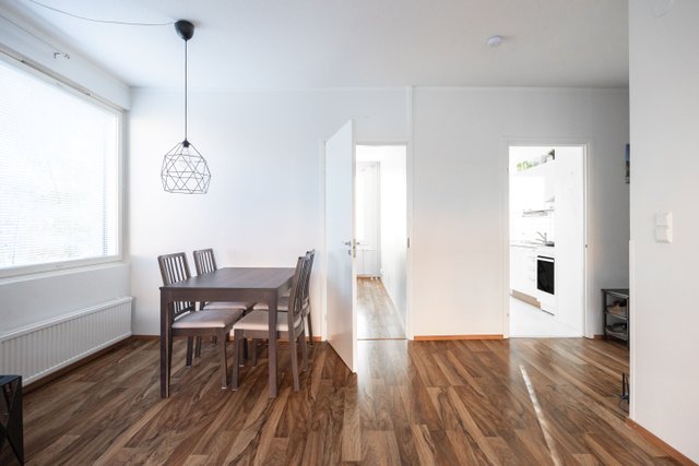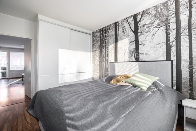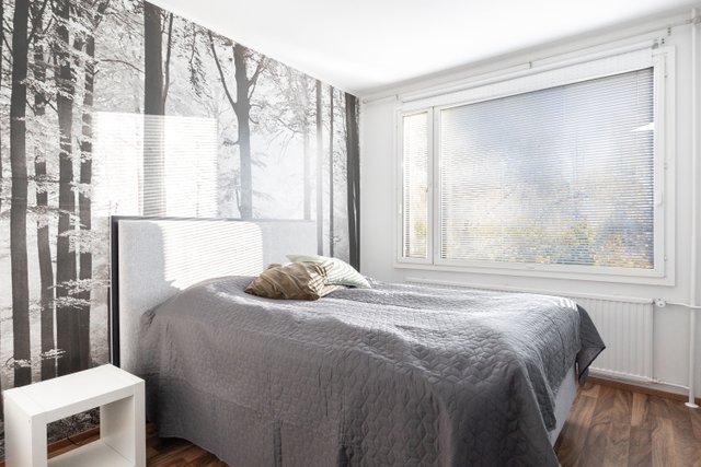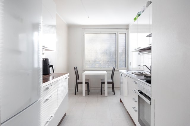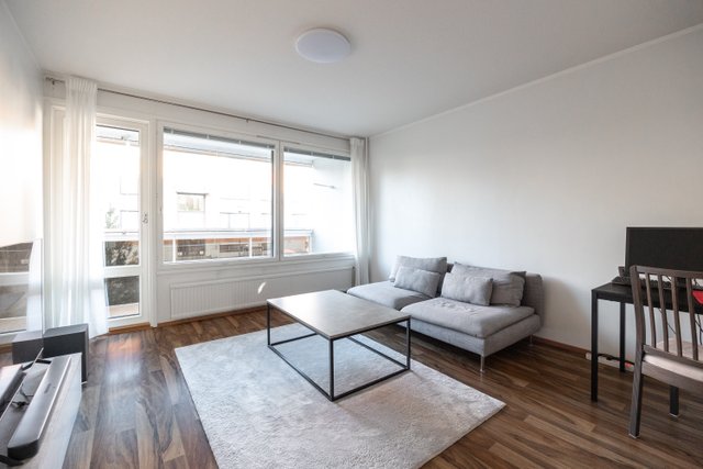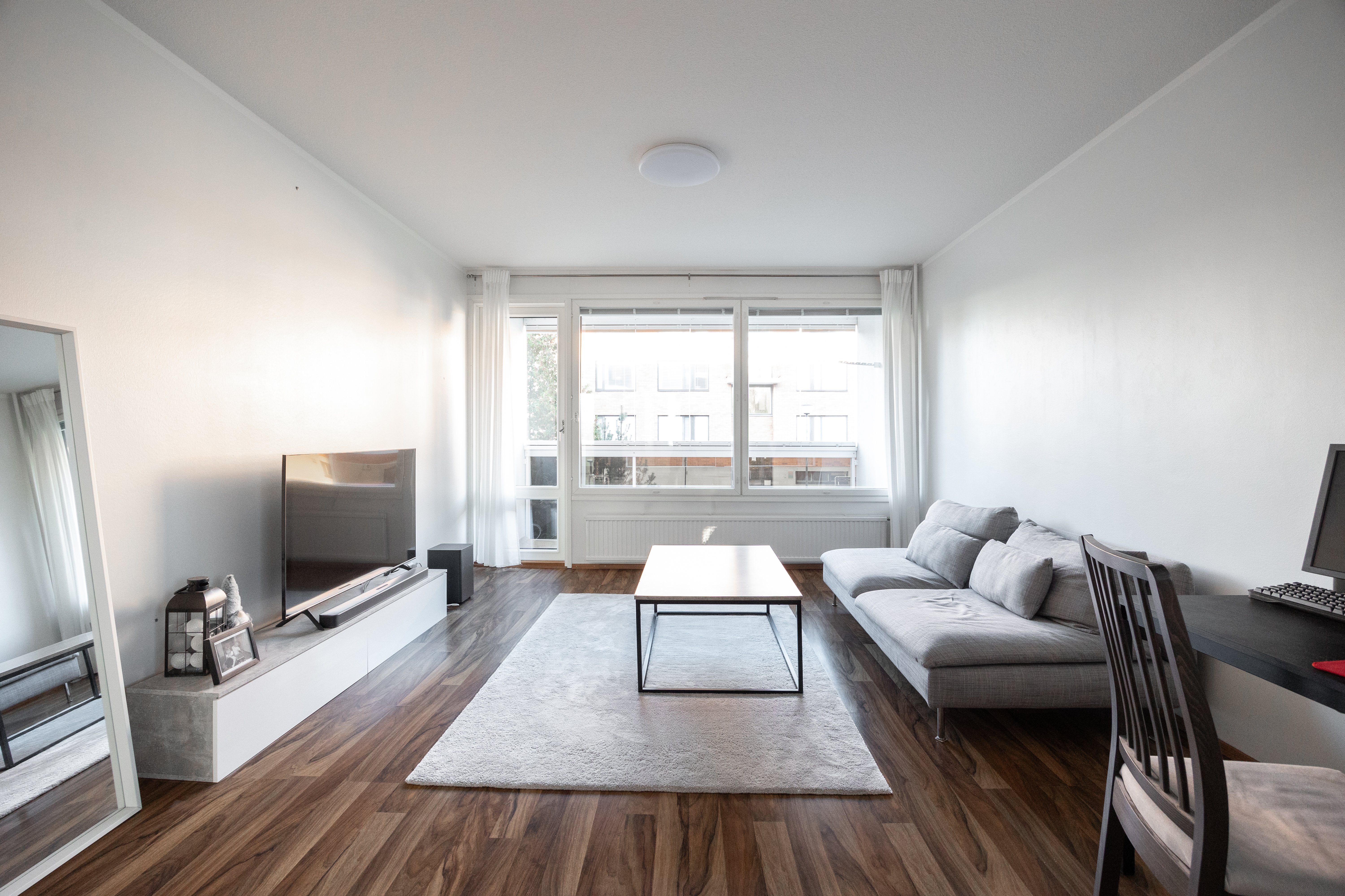 Asunnossa on tilava ja valoisa olohuone, kaksi makuuhuonetta, käytännöllinen ja modernisti remontoitu keittiö sekä siisti kylpyhuone. Lasitettu parveke tarjoaa mukavan lisätilan rentoutumiseen, ja sieltä avautuvat vehreät näkymät taloyhtiön pihapiiriin. Kodin tunnelma on rauhallinen ja toimiva, ja pohjaratkaisu sopii hyvin sekä pienelle perheelle että pariskunnalle.