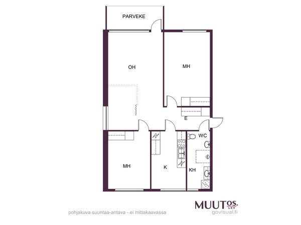 - Edellä mainittu pinta-ala saattaa tämän ikäisessä kohteessa poiketa olennaisestikin huoneiston nykyisen ja rakentamisaikaisen mittaustapojen ja standardien mukaan laskettavasta pinta-alasta. Huoneiston todellinen pinta-ala voi olla yhtiöjärjestyksessä, isännöitsijäntodistuksessa ja esitteessä mainittua pienempi tai suurempi. Hinta ei ole pinta-alaperusteinen. Yhtiöjärjestyksen mukainen huoneistoselitelmä: 3h+k