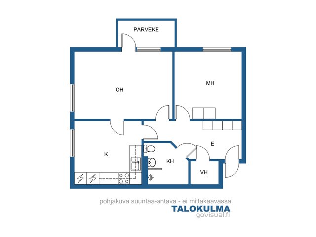- Ikkunat kahteen suuntaan, kulku lasitetulle parvekkeelle