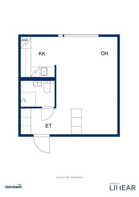 - Ei tarkistusmitattu. Pinta-alat saattavat tämän ikäisissä kohteissa (yhtiö rekisteröity ennen 1.1.1992) poiketa olennaisestikin asuinrakennusten nykyisten mittaustapojen ja standardien (SFS 5139) mukaan laskettavasta asuintilojen pinta-alasta. Pinta-ala voi siis olla edellä mainittua pienempi tai suurempi.