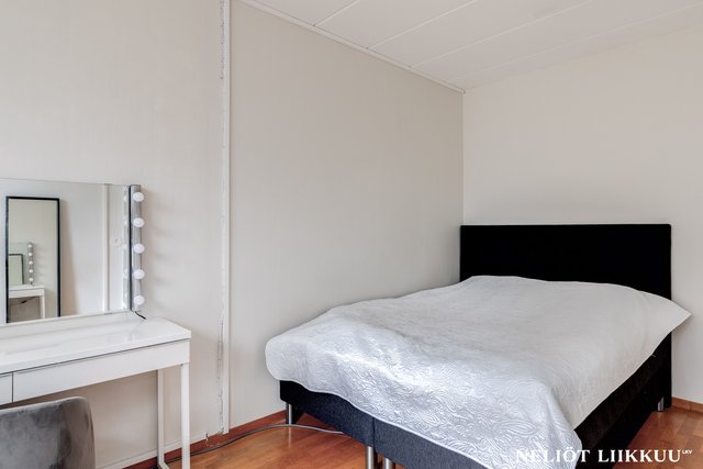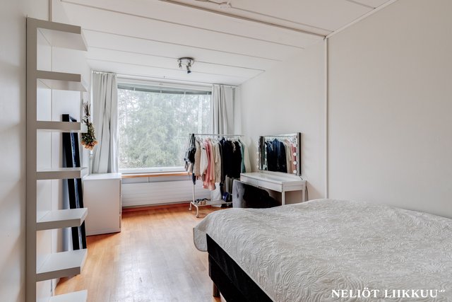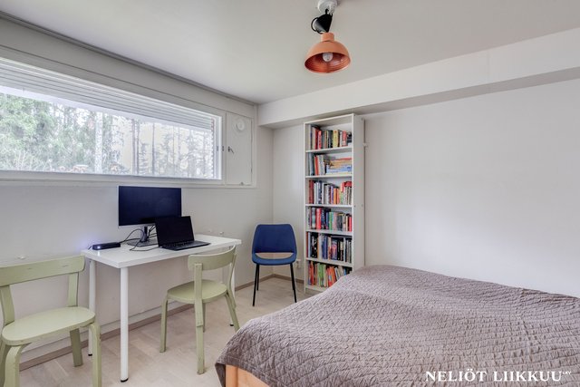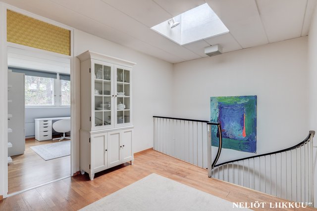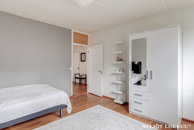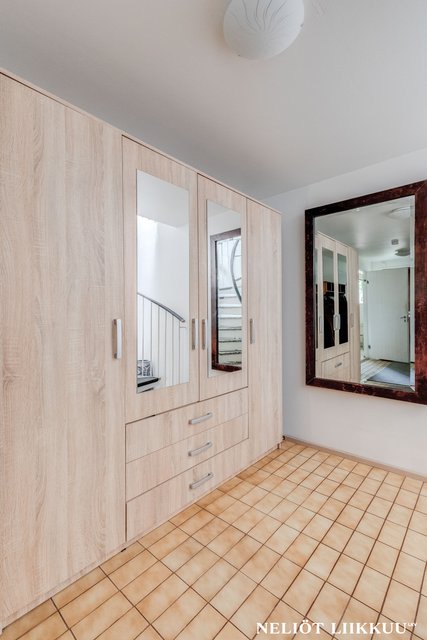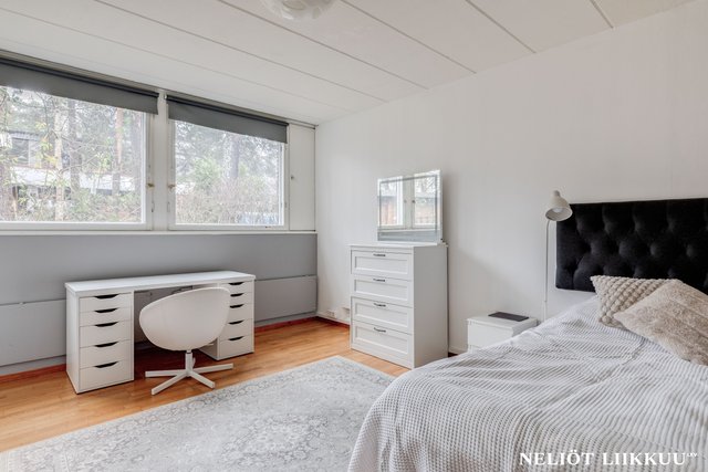 - Kaksi avaraa ja kauniisti valoisaa makuuhuonetta yläkerrassa sekä erillinen makuuhuone alakerrassa luovat joustavat ja monipuoliset tilat erilaisiin elämäntilanteisiin.
