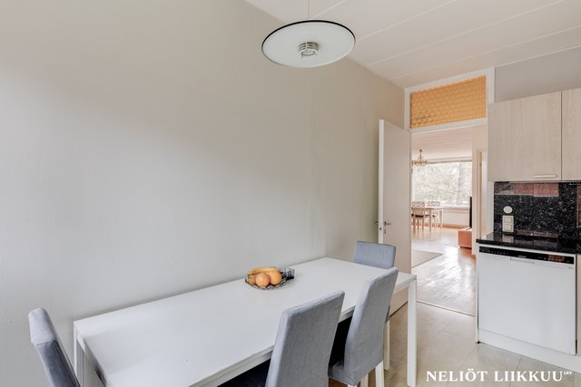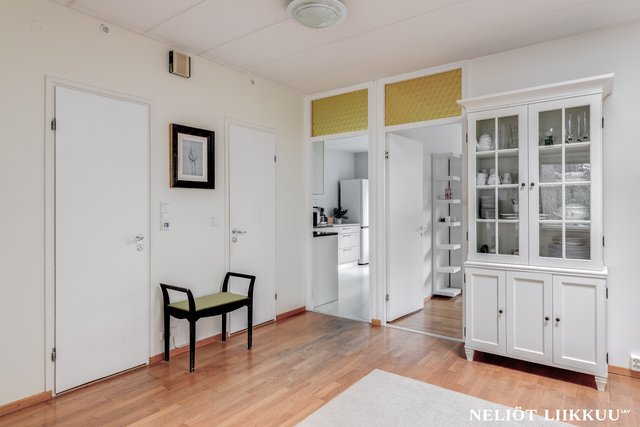 Kauniaisten rauhallinen ympäristö, omistustontti ja hyvin pidetty taloyhtiö tekevät tästä kodista houkuttelevan kokonaisuuden.