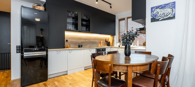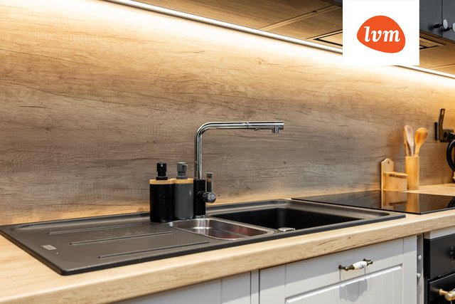 - Jääkaappi, liesi, liesituuletin, astianpesukone, ja uuni