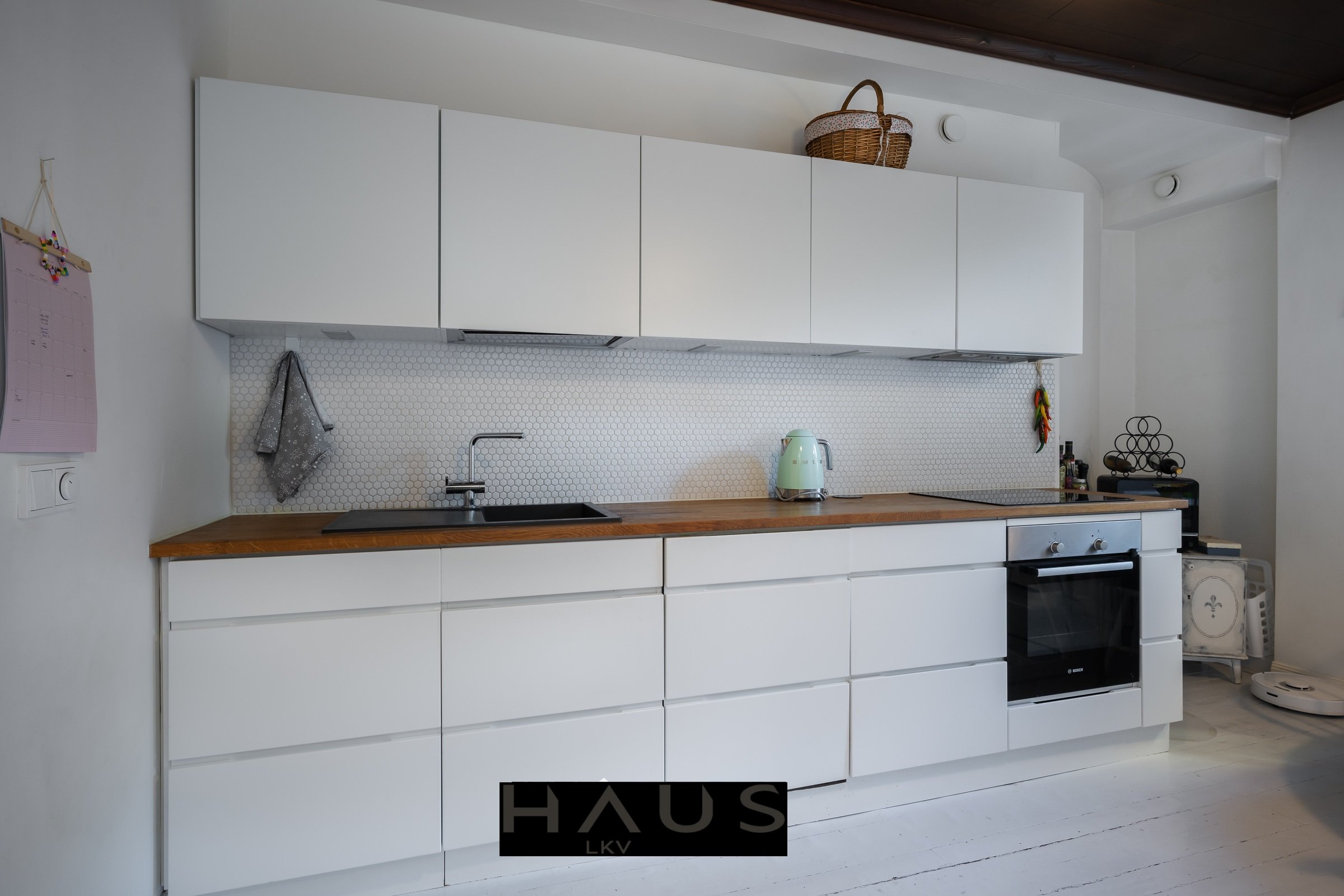 Olohuone kutsuu rentoutumaan ja viihtymään, ja vuonna 2016 uusittu keittiö tekee ruoanlaitosta nautinnon. Tilava kylpyhuone ja oma sauna tuovat arkeen ripauksen luksusta, ja vuonna 2022 tehty nanopinnoitus pitää pinnat kestävimpänä ja helppohoitoisina. Maalatut seinät, parketti- ja lautalattiat sekä suuret ikkunat tuovat kotiin valoa, tyyliä ja lämpöä.