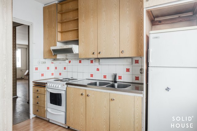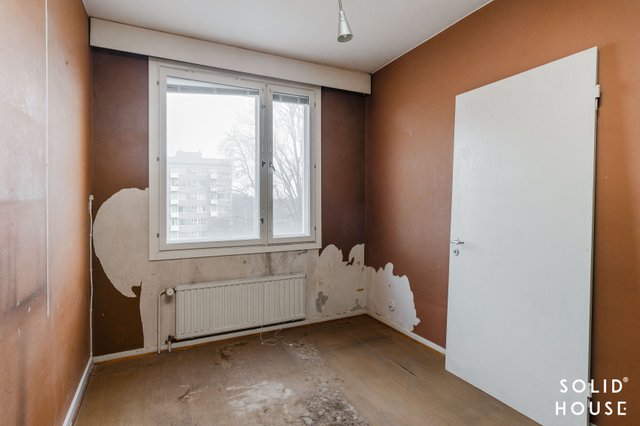Kompakti 5-kerroksen keskustakolmio odottaa osaavia käsiä, maalia ja pensseleitä. Aikaisempi asukas on viihtynyt talon 1962 valmistumisesta asti, eli talossa asutaan pitkään. Asunto on alkuperäiskuntoinen joten pintoja pitää päivittää. Mikäli vaatehuone tuntuu turhalta ja liukuvikaapisto riittää niin sellaisella muutoksella toisesta makuuhuoneesta saa todella ison mihin mahtuu kätevästi työpiste. Toinen makuuhuone selkeästi pienempi mikä toimii mainiosti lastenhuoneena, vierashuoneena tai työhuoneena. Makuuhuoneiden ikkunat rauhalliselle sisäpihalle. Parvekkeelle mahtuu tuoli ja pöytä.