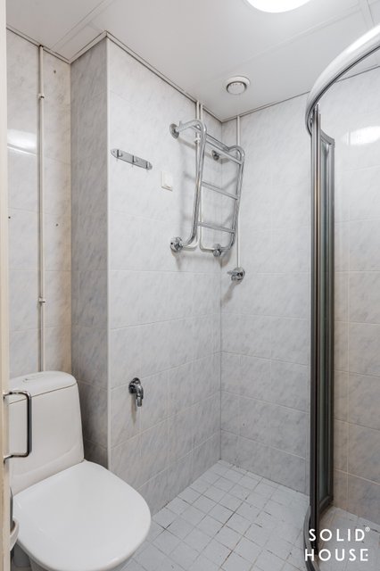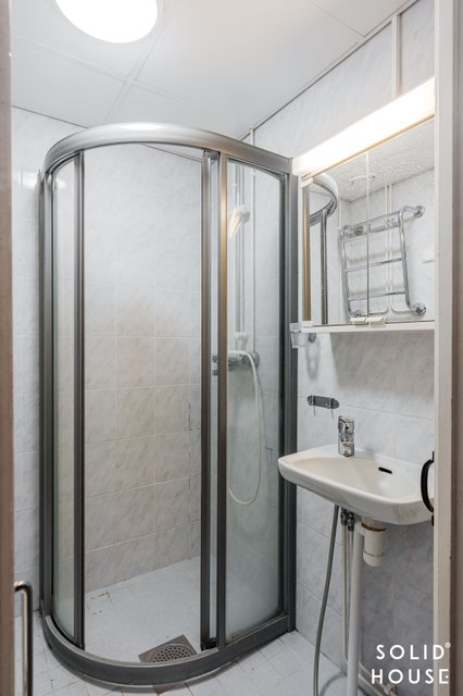 - WC-istuin, suihkukaappi, pesukoneliitäntä, pesuallas, ja peilikaappi