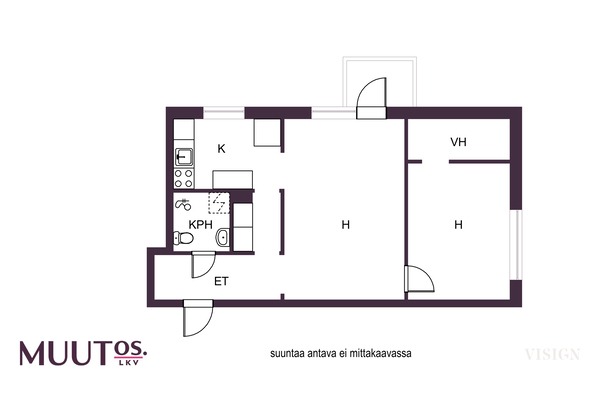 - Edellä mainittu pinta-ala saattaa tämän ikäisessä kohteessa poiketa olennaisestikin huoneiston nykyisen ja rakentamisaikaisen mittaustapojen ja standardien mukaan laskettavasta pinta-alasta. Huoneiston todellinen pinta-ala voi olla yhtiöjärjestyksessä, isännöitsijäntodistuksessa ja esitteessä mainittua pienempi tai suurempi. Hinta ei ole pinta-alaperusteinen. Yhtiöjärjestyksen mukainen huoneistoselitelmä 2h + k + kh + p.