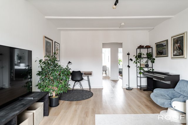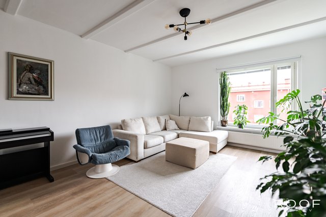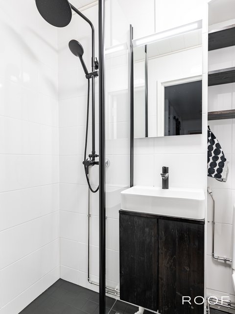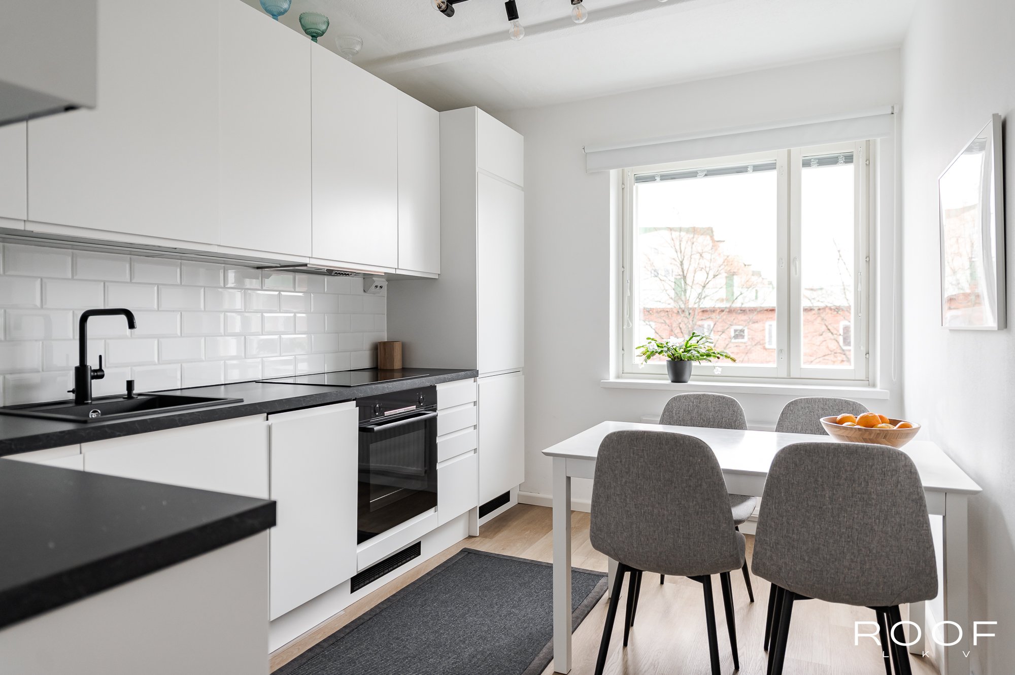 Asunnossa on tilava olohuone ja erillinen makuuhuone. Ylin kerros takaa rauhalliset yöunet. Eleettömän tyylikäs keittiö on uusittu 2022 ja varusteltu nykyaikaisilla integroiduilla kodinkoneilla. Myös pyykinpesukone on sijoitettu keittiöön, kaapin oven taakse katseilta piiloon. Kompaktista kylpyhuoneesta löytyy kaikki tarvittava. Asuntoon on asennettu remontissa jalalle miellyttävät vinyylilattiat.