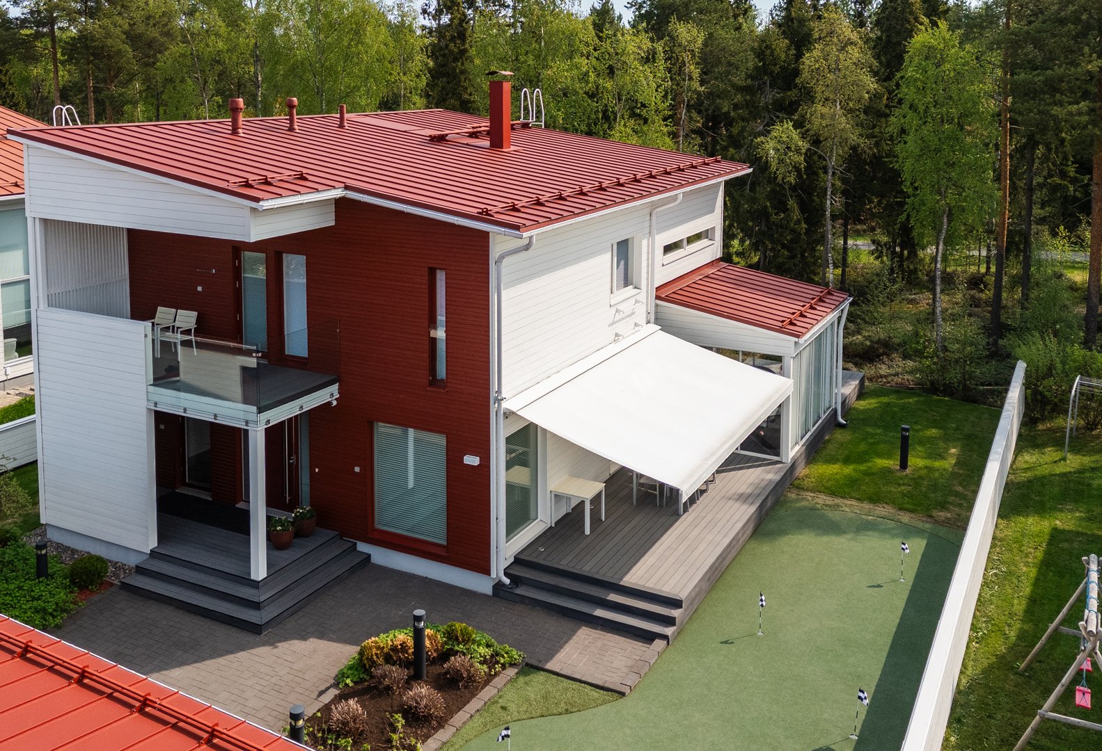 - Lunacompin mustalla huoltovapaalla komposiittilaudalla rakennettujen terassi- ja parveke lattioiden yhteisala 70 m2.
