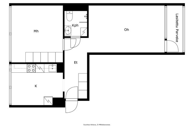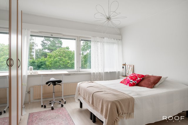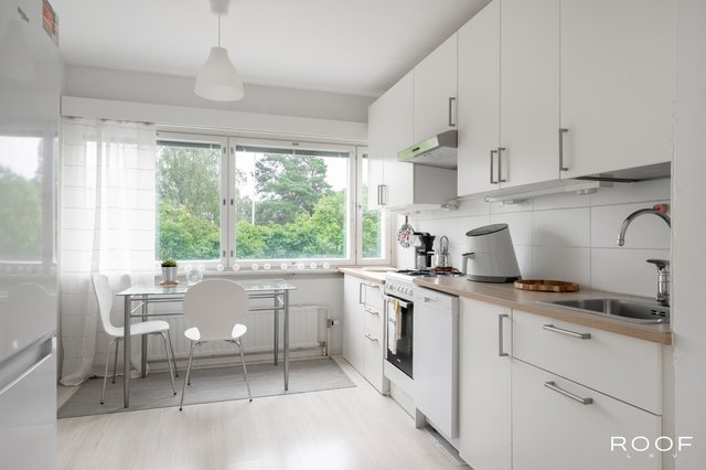 Tervetuloa tutustumaan tähän valoisaan ja hyväpohjaiseen läpitalon kaksioon, jossa on erillinen keittiö ja viihtyisä lasitettu parveke. Asunnossa on tehty putkiremontti vuonna 2012, ja keittiö on uusittu nykyaikaiseksi ja toimivaksi vuonna 2017. Tilavat huoneet ja selkeä pohjaratkaisu tekevät tästä kodista helposti muunneltavan eri elämäntilanteisiin.