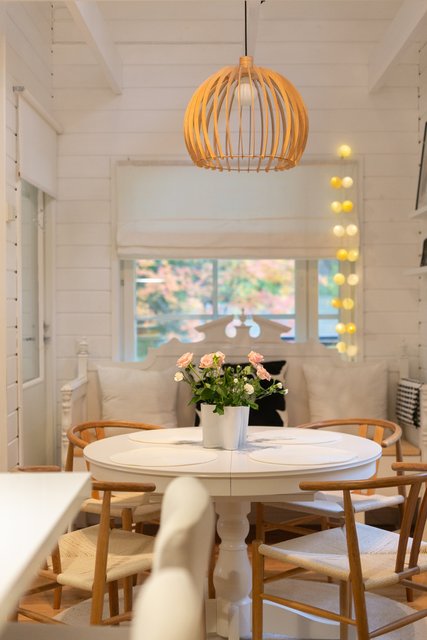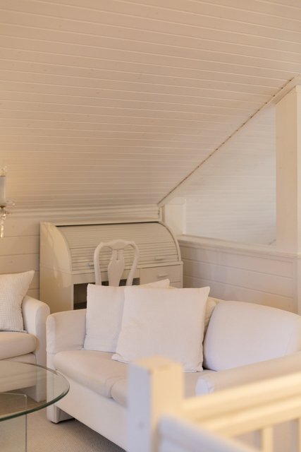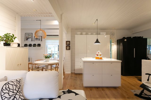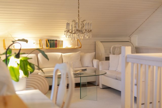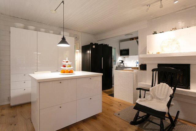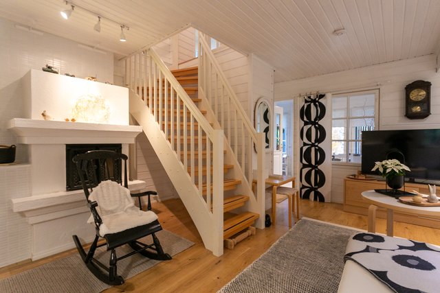 Alueen sydämenä toimii kaksikerroksinen täysin nykyaikainen huvila, joka on hyvin pidetty ja hyvässä kunnossa. Tilavat ja korkeat huoneet luovat avaran ja valoisan tunnelman, ja olohuoneen takka tuo lämpöä ja tunnelmaa kylmiin talvi-iltoihin.