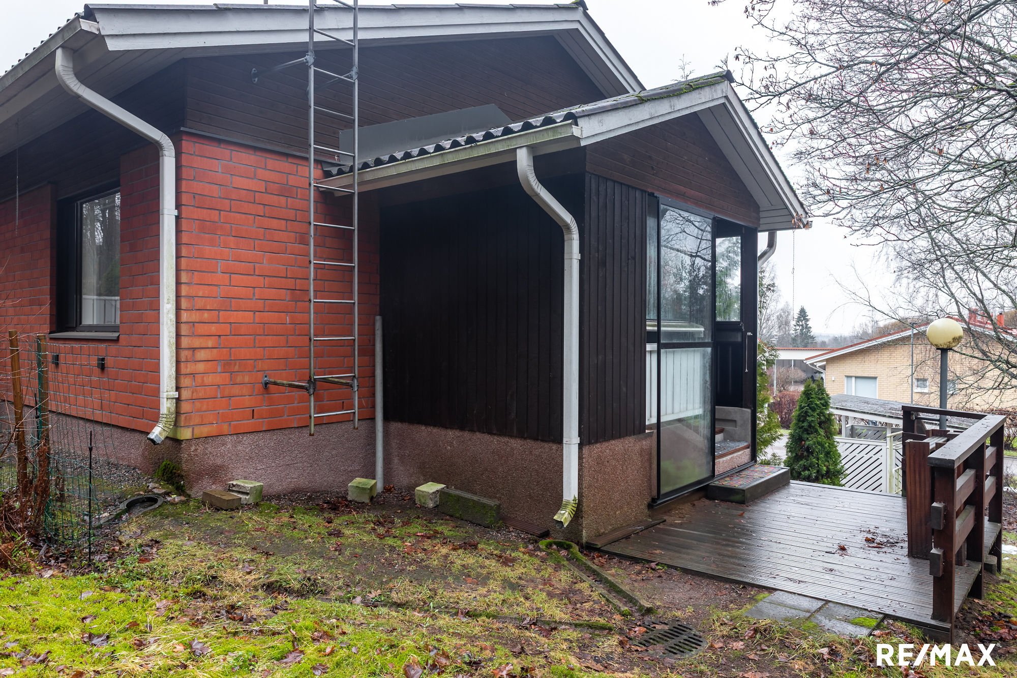 Sisäänkäynnin yhteydessä oleva hyvän kokoinen lasitettu terassi lisää asumismukavuutta ja toimii mainiona lisätilana kesällä ja pitkälle syksyyn.
