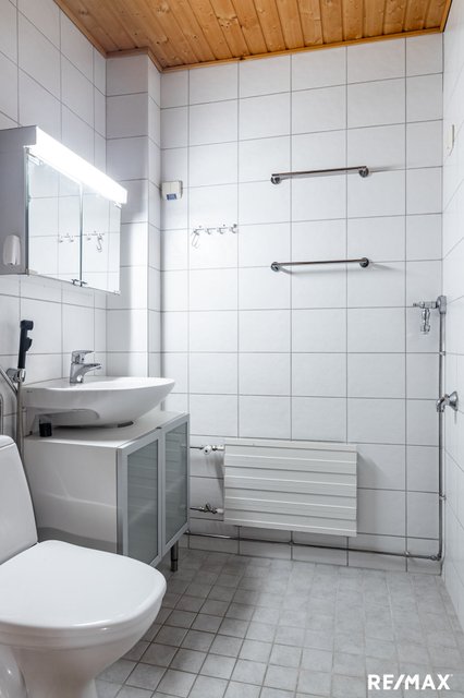 Remontoidun kylpyhuoneen yhteydessä myös oma sauna, joka tuo mukavuutta arkeen.