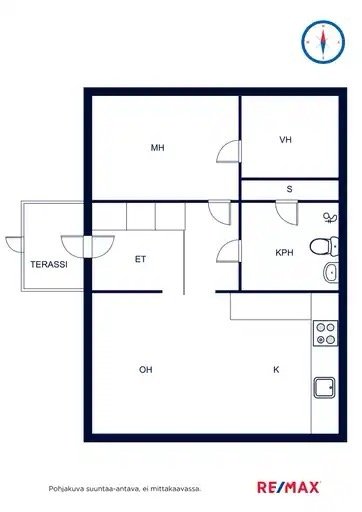 2h, avok, kph/wc, s, vh, lasitettu terassi