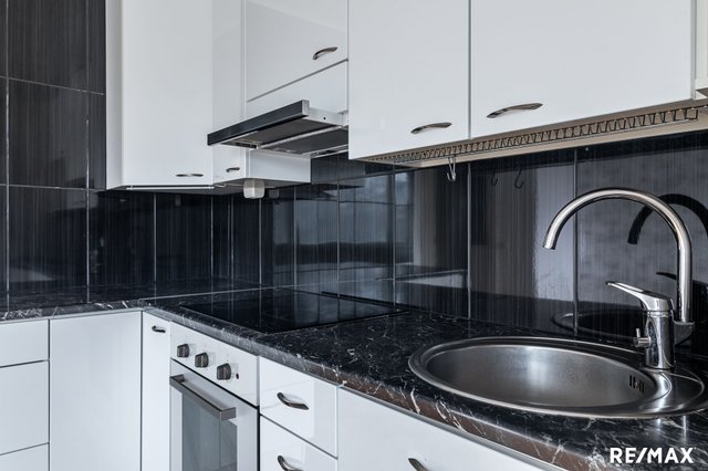 Keittiön tasot ovat laadukkaat ja kaapistoissa on reilusti tilaa tavaran säilytystä varten.