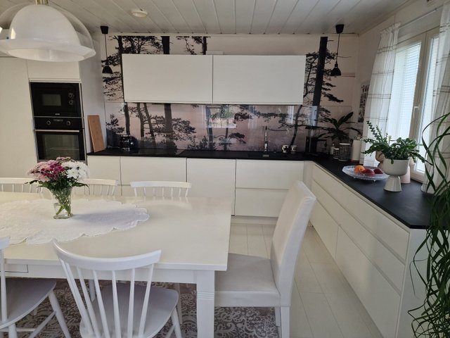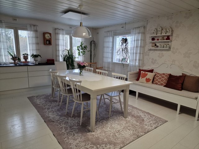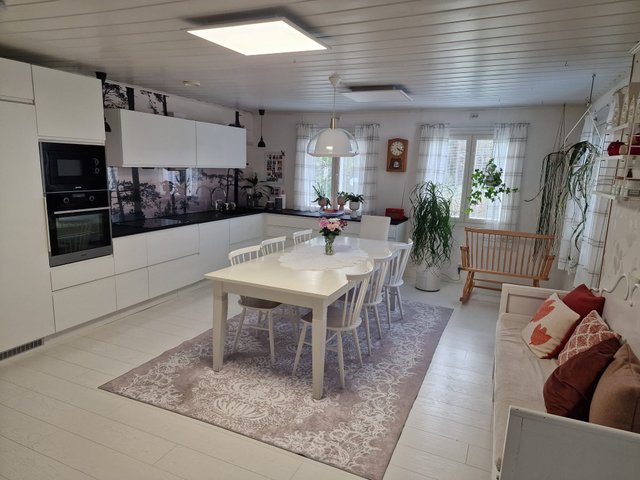 Kaunis koti Eurajoella, seesteisissä maalaismaisemissa. Alun perin vuonna 1926 rakennettu omakotitalo on täysin peruskorjattu ja laajennettu vuosina 2001-2002. Talosta on huolehdittu rakkaudella, ja se näkyy. Omalla, 3600 m2 tontilla sijaitsevan kodin asuintilat ovat kahdessa kerroksessa. Alakerrassa on eteinen, tupakeittiö, olohuone, makuuhuone, kodinhoitohuone, pesuhuone, sauna sekä erillinen wc. Yläkerrassa on aula, kaksi makuuhuonetta sekä pieni parveke. Kauniisti remontoitu koti huokuu lämminhenkistä tunnelmaa. Upea keittiö on uusittu vuonna 2017 vaalein sävyin. Piha on sepelöity vuonna 2025. Tontilla sijaitsee talon lisäksi kahden auton katos, sekä puuvarasto. Talousrakennuksessa on tunnelmallinen pihasauna, jossa on pata sekä kesäsuihku. Rakennuksessa on lisäksi varastohuone, sekä autotalli. Tien toisella puolella, jonne tontti jatkuu, sijaitsee pieni varastorakennus. Tule tutustumaan tähän kotiin paikan päälle ja ihastu ikihyviksi.
