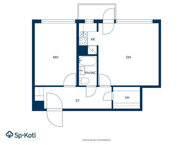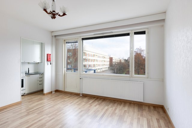 Asunnossa on toimiva pohjaratkaisu, joka sopii erityisesti yksinasuville tai opiskelijoille. Olohuone ja makuuhuone ovat tilavia, ja keittokomerossa on kaikki tarpeellinen. Kylpyhuone on laatoitettu ja varustettu käytännöllisillä kalusteilla.