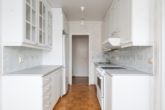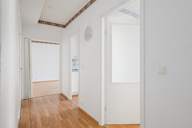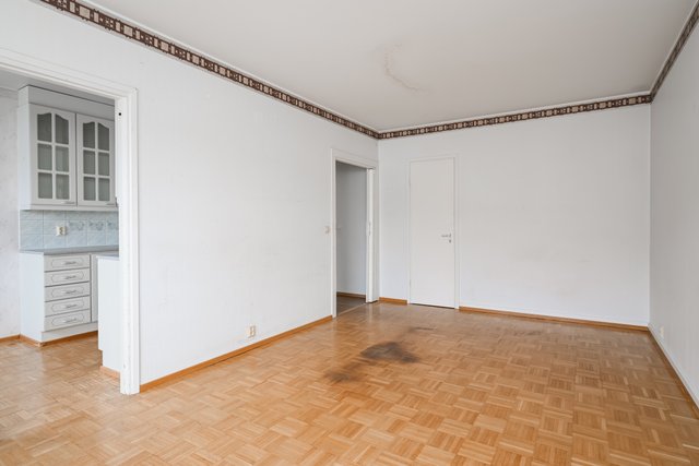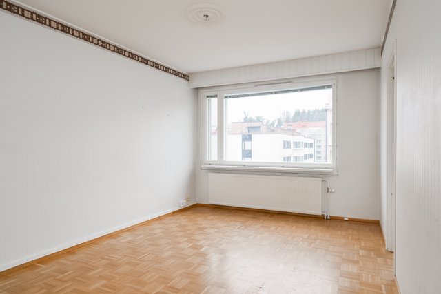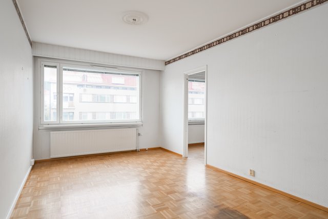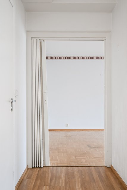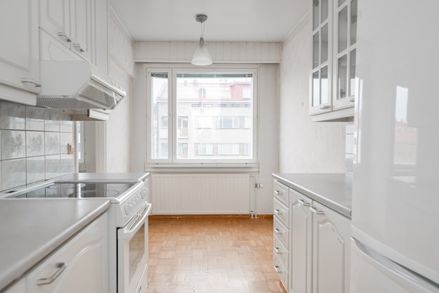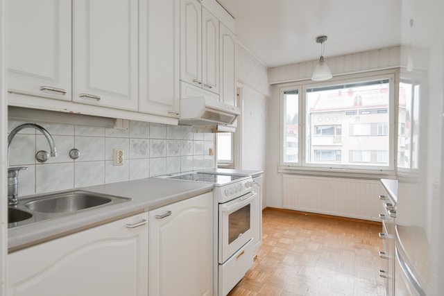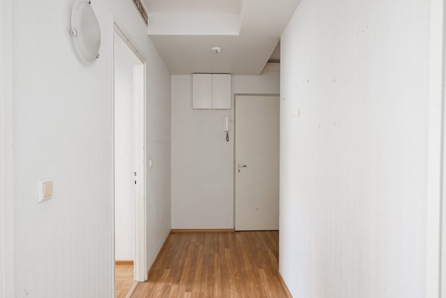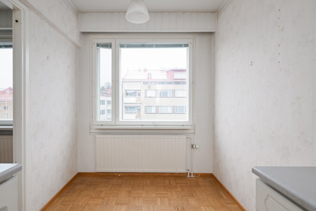 Ylimmän kerroksen kaksio remontoidusta taloyhtiöstä.