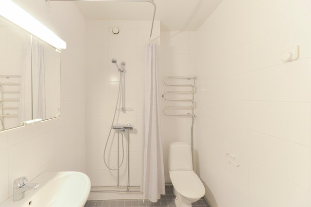 - WC-istuin, suihku, pesukoneliitäntä, peilikaappi, ja bidee-suihku