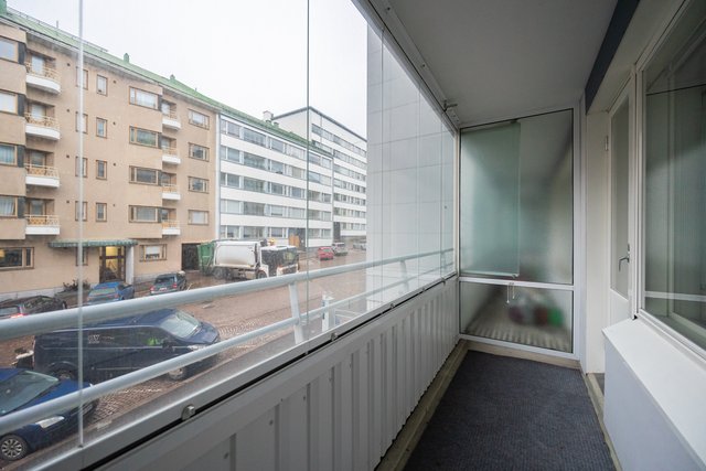 Asunnon lasitettu parveke itään päin on täydellinen paikka nauttia aamukahvista ja seurata kaupungin elämää. Taloyhtiössä on myös asukkaiden käytössä sauna, pesutupa ja pyörävarasto, mikä lisää asumismukavuutta.