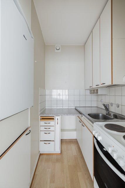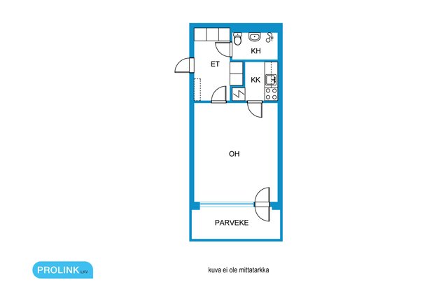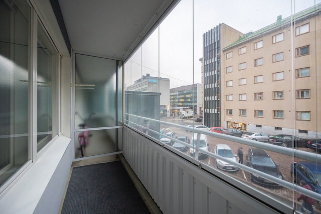Tämä 30 neliömetrin asunto sijaitsee ensimmäisessä kerroksessa, ja siitä avautuu näkymä Kauppakadulle sekä Trio-kauppakeskukseen. Asunnossa on käytännöllinen keittokomero, joka on varustettu peruslaitteilla, ja kylpyhuoneessa on kaikki tarvittavat mukavuudet, kuten pesukoneliitäntä.