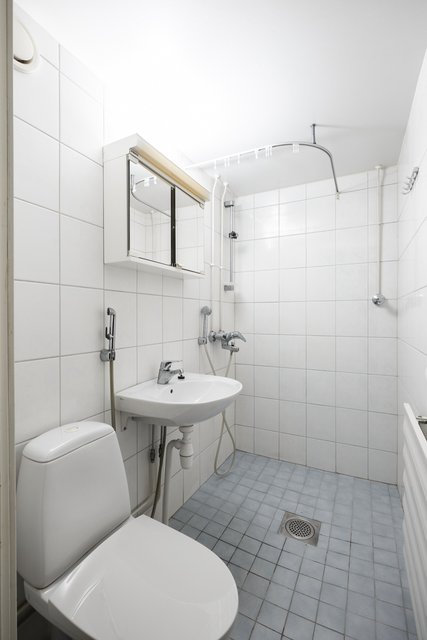 - WC-istuin, suihku, pesukoneliitäntä, peilikaappi, bidee-suihku, ja pesuallas