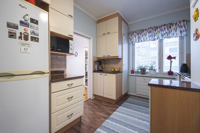 Asunto on hyvässä kunnossa ja sen kolme makuuhuonetta, ruokailutila sekä olohuone luovat viihtyisän kokonaisuuden, kaappi- ja säilytystilaa huoneistossa on todella hyvin. Luonnonvalo tulvii sisään ikkunoista ja parveke tarjoaa mukavan paikan nauttia ulkoilmasta. Keittiö on mukavasti ruokailutilan lähettyvillä.