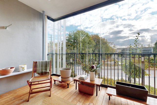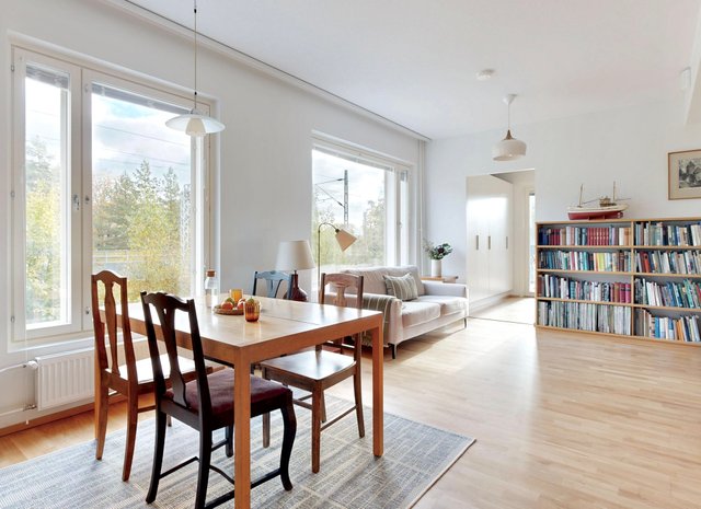Tässä kulmaahuoneistossa ihastuttaa valoisat oleskelutilat, johon mahtuu niin sohva-kuin ruokaryhmä. Asunnossa on tyylikäs keittiö, jossa on hyvin säilytys-ja laskutilaa. Makuuhuoneesta on käynti lasitetulle parvekkeelle, joka toimii lisähuoneena. Makuuhuoneessa ja eteisessä on lisäksi kaapistot. Tilava kylpyhuone, jossa paikka pyykinpesutornille.