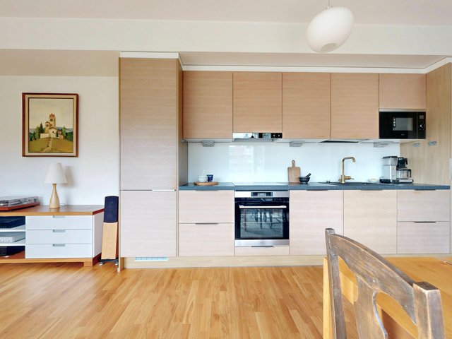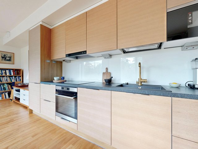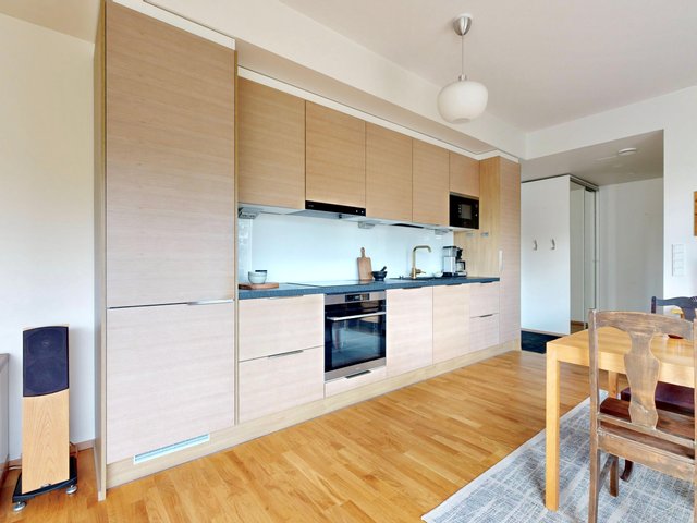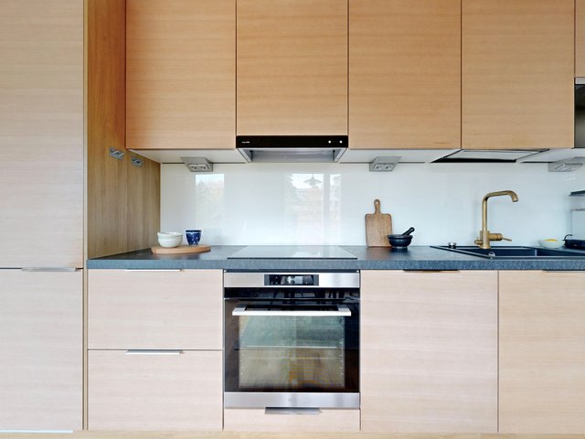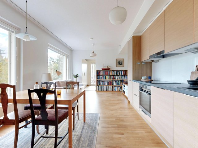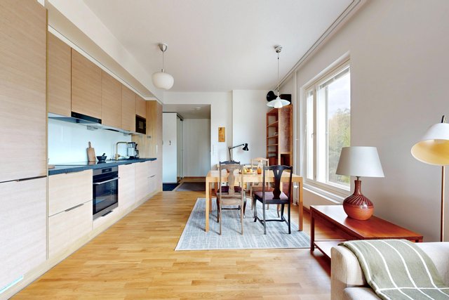 - VARUSTUS: Induktioliesi, Erillisuuni, Liesikupu, Hana, Kaapisto, Allas, Mikroaaltouuni, Astianpesukone, Jääkaappipakastin. TYÖTASO: Laminaatti. SEINÄT: Välitila Lasi. LATTIA: Parketti.