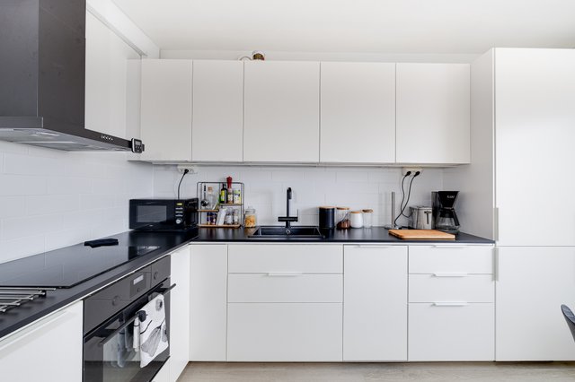 Keittiö on hyvin varusteltu, kuten induktioliedellä ja integroidulla jääkaappipakastimella. Kylpyhuoneen lattialämmitys tuo mukavuutta arkeen, ja pesukoneliitäntä helpottaa pyykkihuoltoa. Asunnossa on myös erillinen vaatehuone, joka tarjoaa runsaasti säilytystilaa.