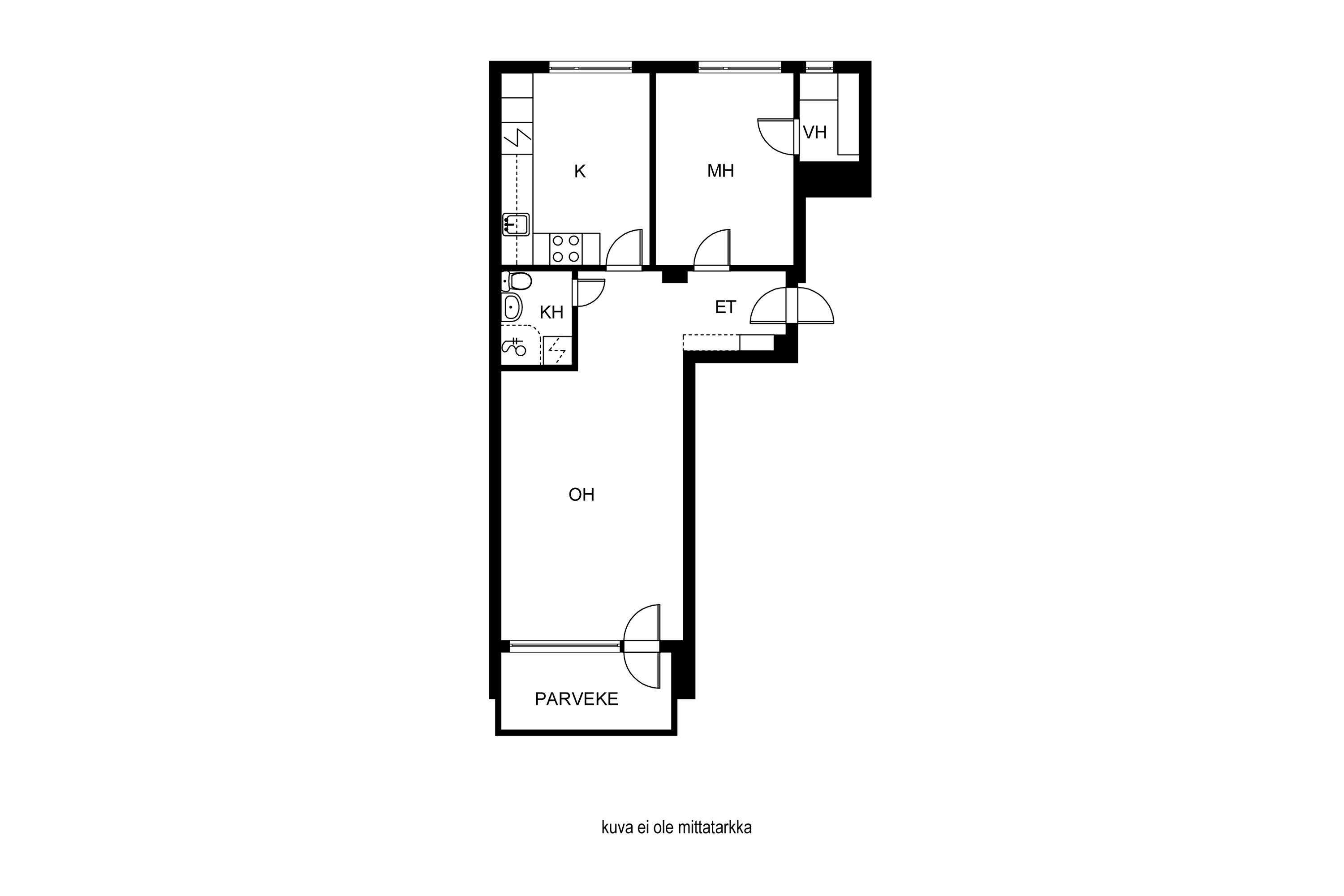 - Ei tarkistusmitattu. Pinta-alat saattavat tämän ikäisissä kohteissa (yhtiö rekisteröity ennen 01.01.1992) poiketa olennaisestikin asuinrakennusten nykyisten mittaustapojen ja standardien (SFS 5139) mukaan laskettavasta asuintilojen pinta-alasta. Pinta-ala voi siis olla edellä mainittua pienempi tai suurempi.